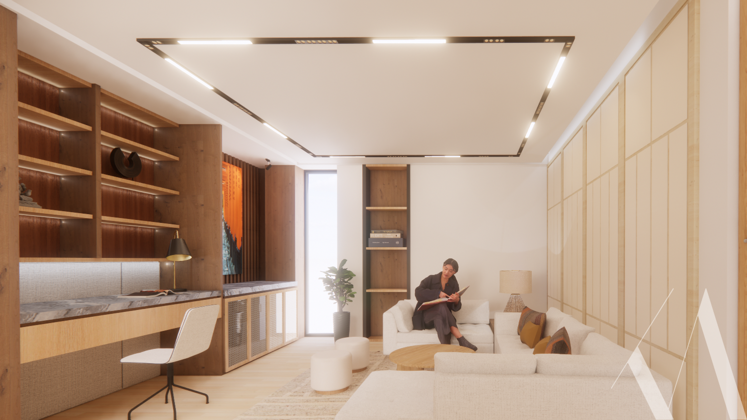 This renovation project sought to harmonise Japanese minimalism with Scandinavian functionality. The result is a home characterised by clean lines, natural light, and a serene atmosphere. A palette of neutral tones, accented with subtle pops of colour, creates a sophisticated yet inviting ambiance. We incorporated natural materials such as wood, stone, and linen throughout the space to enhance the sense of tranquility. To preserve the family’s heritage, we carefully restored several heirloom pieces, seamlessly integrating them into the contemporary design.